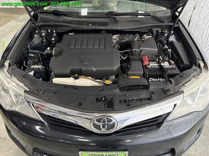 Introducing the 2012 Toyota Camry SE V6, a reliable and stylish sedan that combines performance with comfort. Powered by a robust 3.5L V6 engine, delivering 268 horsepower and 248 lb-ft of torque, this vehicle offers a dynamic driving experience. The exterior is finished in a sleek Attitude Black Metallic, complemented by a sophisticated Black/Ash interior.