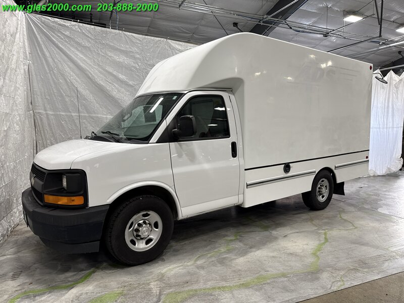 Explore this 2017 Chevrolet Express 3500, featuring a robust Vortec 4.8L V8 engine that delivers 285 horsepower and 295 ft-lbs of torque. The exterior is a clean White, complemented by a comfortable Gray interior, providing a professional appearance and a versatile cabin space.