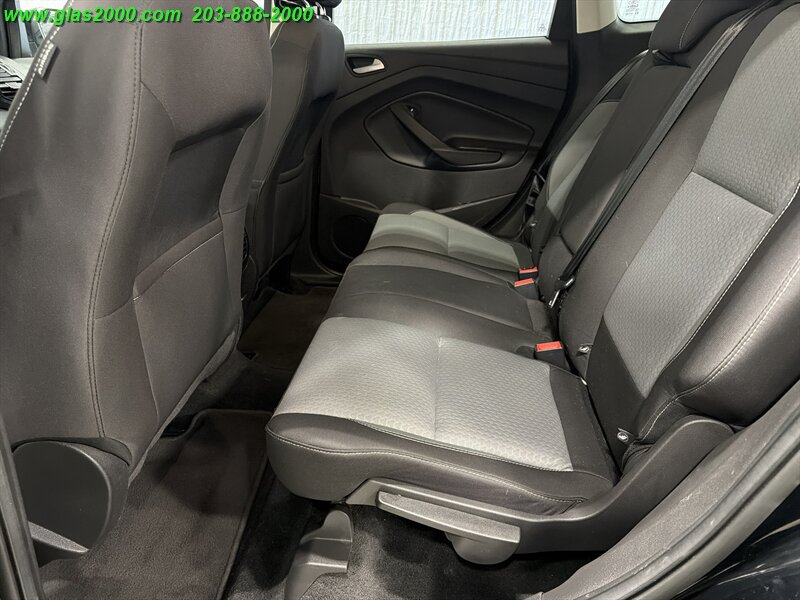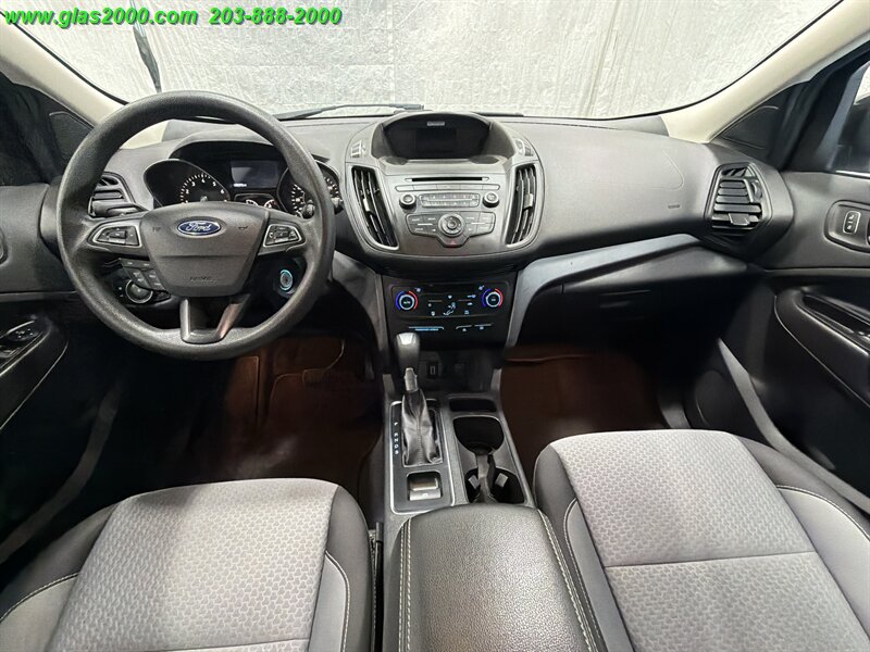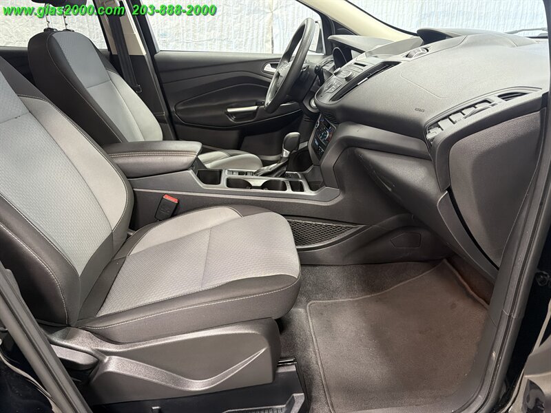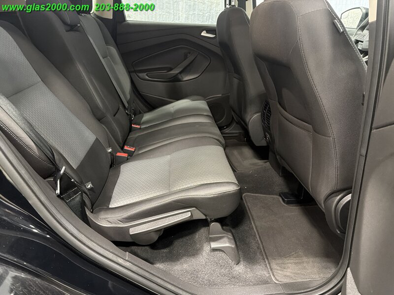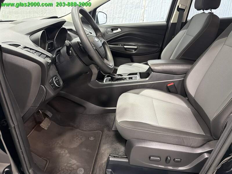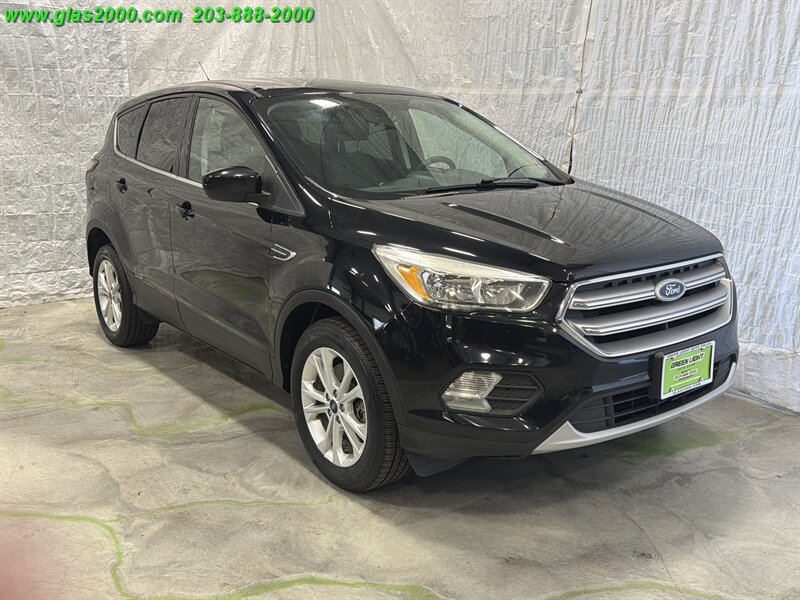 2017 Ford Escape SE in Black with a Gray interior, powered by a 1.5L EcoBoost Turbo I4 producing 179 hp and 177 lb-ft. Factory-equipped features include keyless entry, power windows and locks, cruise control, air conditioning, cloth seating with 60/40 split-folding rear seats, tilt-and-telescoping steering wheel, Ford SYNC infotainment with Bluetooth and USB/AUX inputs, rearview camera, ABS, traction and stability control, multiple airbags and tire-pressure monitoring. Under 89,000 miles (averaging less than 9,000 miles per year), EPA-rated 22 MPG city / 28 MPG highway, excellent overall condition with a clean CARFAX.