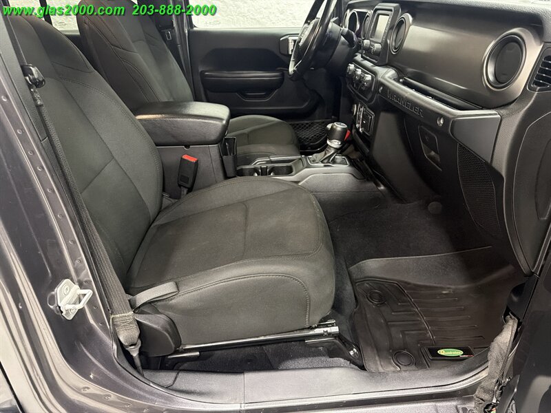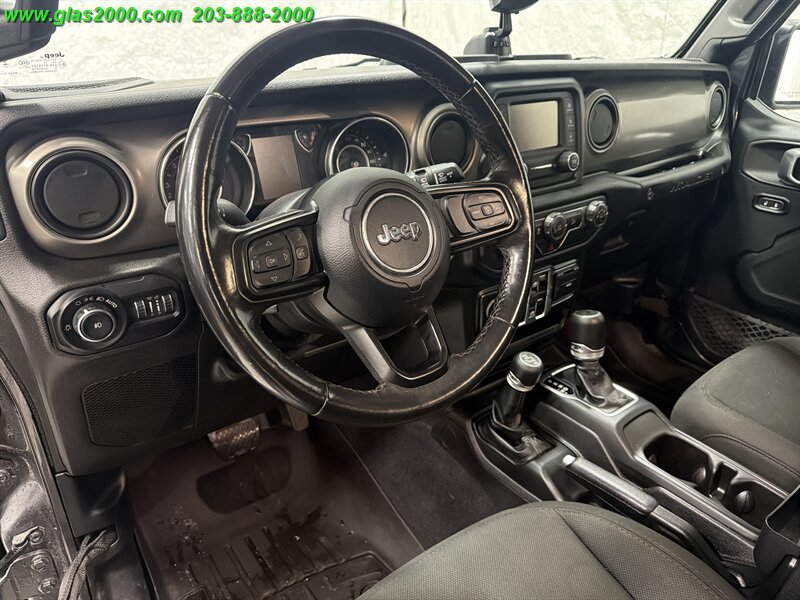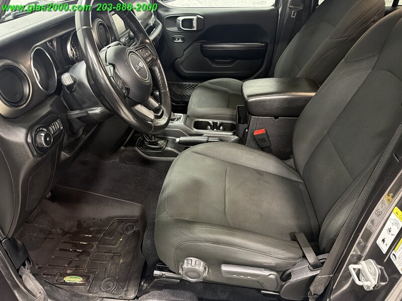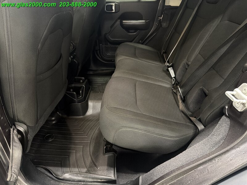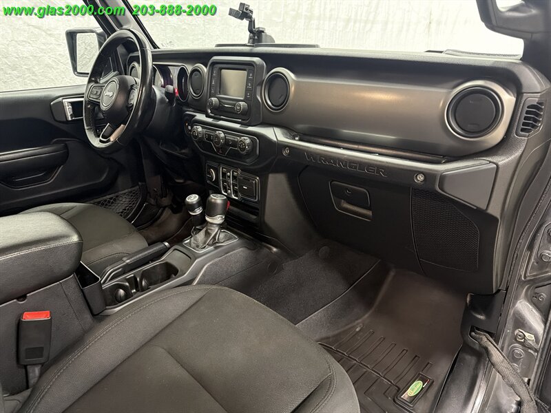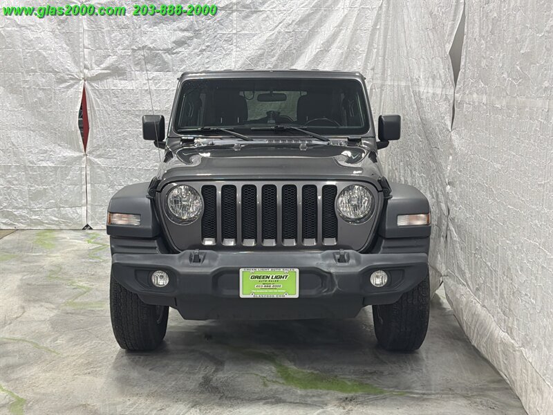 2019 Jeep Wrangler Unlimited Sport S in Silver with a Black interior, powered by a 2.0L Turbo I4 (270 hp, 295 ft-lb). Factory-equipped with the four-door Unlimited body, durable cloth seating, power windows and door locks, remote keyless entry, air conditioning, cruise control, steering-wheel audio controls, Bluetooth hands-free and audio streaming, USB/AUX inputs, rearview backup camera and a full-size spare. Standard safety systems include anti-lock brakes, electronic stability and traction control and multiple airbags. This vehicle gets 22 MPG city and 24 MPG highway, is in excellent overall condition with a clean CARFAX report, and the asking price is below J.D. Power Book value.