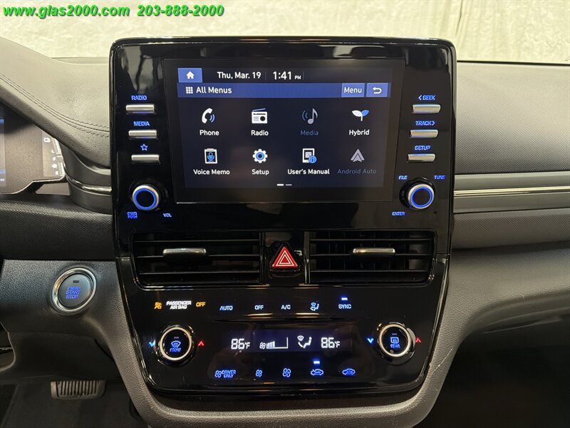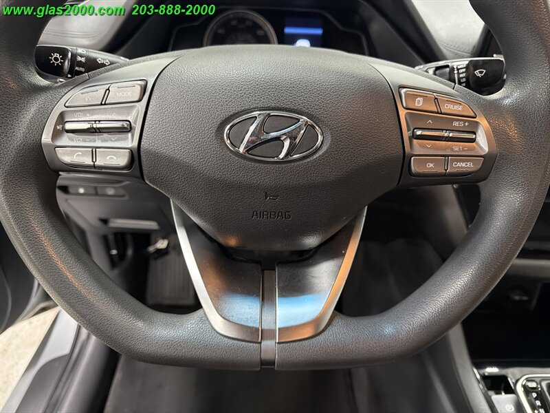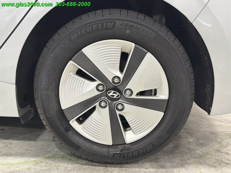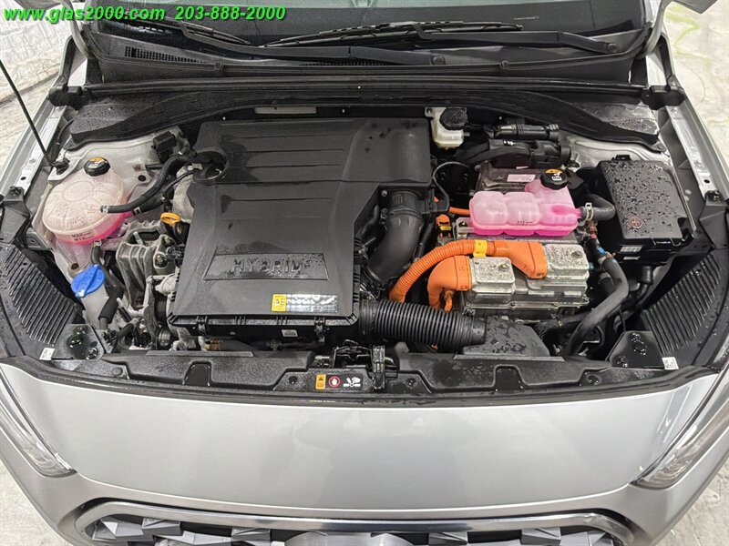 Factory equipment includes: hybrid powertrain with regenerative braking, automatic transmission, standard Hyundai safety technologies (forward collision mitigation, lane-keeping/ lane-departure assistance and driver attention monitoring), infotainment with smartphone integration (Apple CarPlay/Android Auto), Bluetooth and USB connectivity, rearview camera, cruise control, automatic climate control, cloth seating with split-folding rear seats for added cargo flexibility, power windows/locks and remote keyless entry, and aerodynamic alloy wheels.