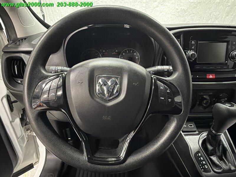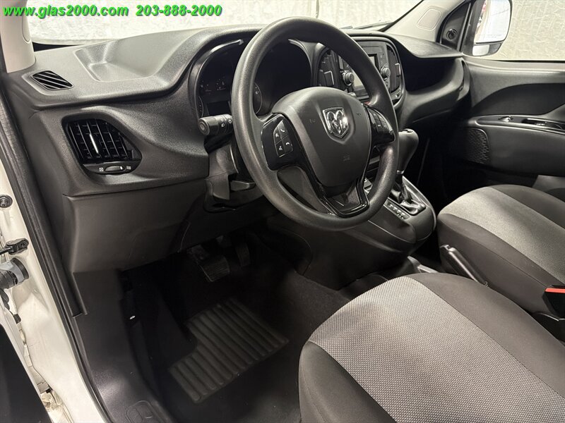 2021 RAM ProMaster City Tradesman in White with a Black interior, in excellent overall condition and a clean CARFAX. Powered by the Tigershark MultiAir 2 2.4L I4 (178 hp, 174 lb-ft) with an automatic transmission and front-wheel drive, it gets an EPA-rated 21 MPG city and 28 MPG highway. Factory-equipped as a cargo-work van, standard features include a durable, cargo-oriented interior with vinyl/cloth front seats, air conditioning, AM/FM audio with Bluetooth and USB connectivity, a rearview camera, sliding side cargo door and swing-out rear doors for loading, steel wheels, power steering and cruise control, plus safety equipment such as ABS, electronic stability and traction control, multiple airbags and tire pressure monitoring.