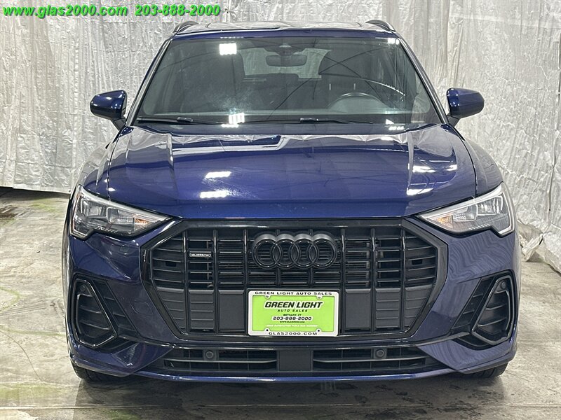 Blue Metallic 2022 Audi Q3 Premium S Line quattro quattro 8-Speed Automatic with Tiptronic 2.0L 4-Cylinder TFSI CREDIT ISSUES? WE CAN HELP!! **203-888-2000**, ACCIDENT FREE CARFAX REPORT, SERVICE HISTORY AVAILABLE, ALL WHEEL DRIVE, ONE OWNER, AVAILABLE EXTENDED WARRANTY, Q3 Premium S Line quattro, 2.0L 4-Cylinder TFSI, 12.3'' Audi Virtual Cockpit Screen, Adaptive Cruise Assist w/Lane Guidance, Audi Connect PRIME & PLUS, Audi Phone Box w/Wireless Charging, Convenience Package, Customizable LED Interior Lighting Package Plus, Full LED Headlights w/Unique DRL Signature, LED Interior Lighting Package, MMI Navigation Plus, MMI Touch Display, Navigation System, Premium Plus Package, Sonos Premium Sound System w/3D Sound, Stainless Steel Trunk Sill, Technology Package, Topview Camera System, Traffic Sign Recognition.